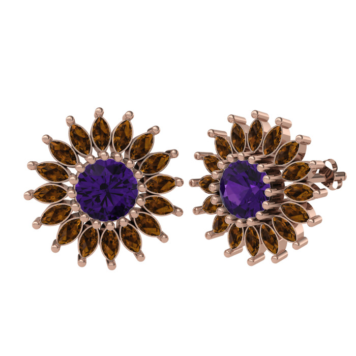 Ametist ve dumanlı kuvars 18 ayar rose altın küpe