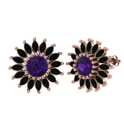 Ametist ve siyah zirkon 14 ayar rose altın küpe