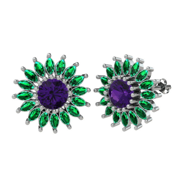 Ametist ve yeşil kuvars 925 ayar gümüş küpe