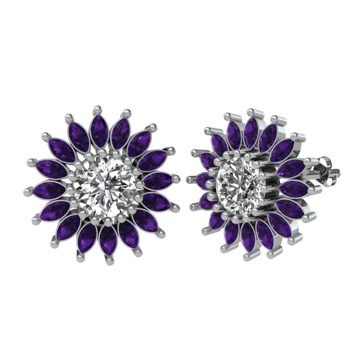 Beyaz zirkon ve ametist 18 ayar beyaz altın küpe