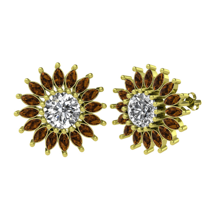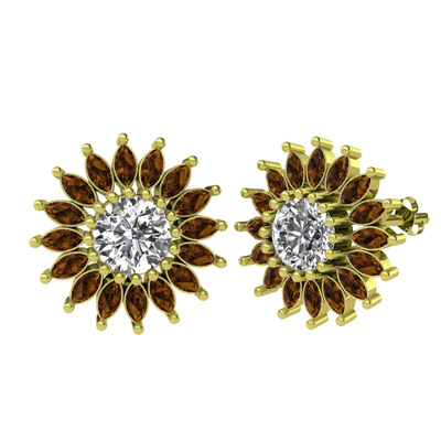 Beyaz zirkon ve dumanlı kuvars 925 ayar altın kaplama gümüş küpe