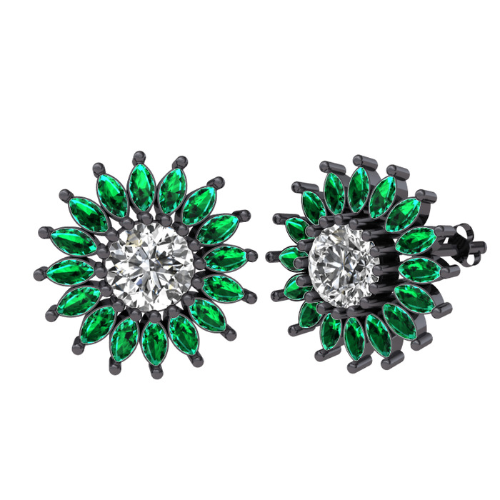 Beyaz zirkon ve yeşil kuvars 925 ayar siyah rodyum kaplama gümüş küpe