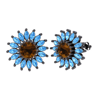 Dumanlı kuvars ve akuamarin 925 ayar siyah rodyum kaplama gümüş küpe