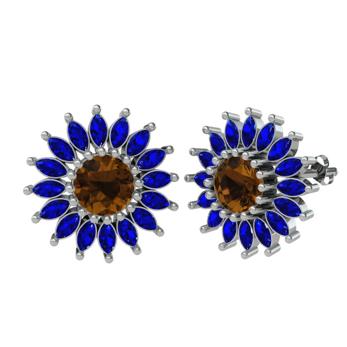 Dumanlı kuvars ve lab safir 925 ayar gümüş küpe
