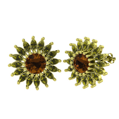 Dumanlı kuvars ve peridot 8 ayar altın küpe