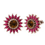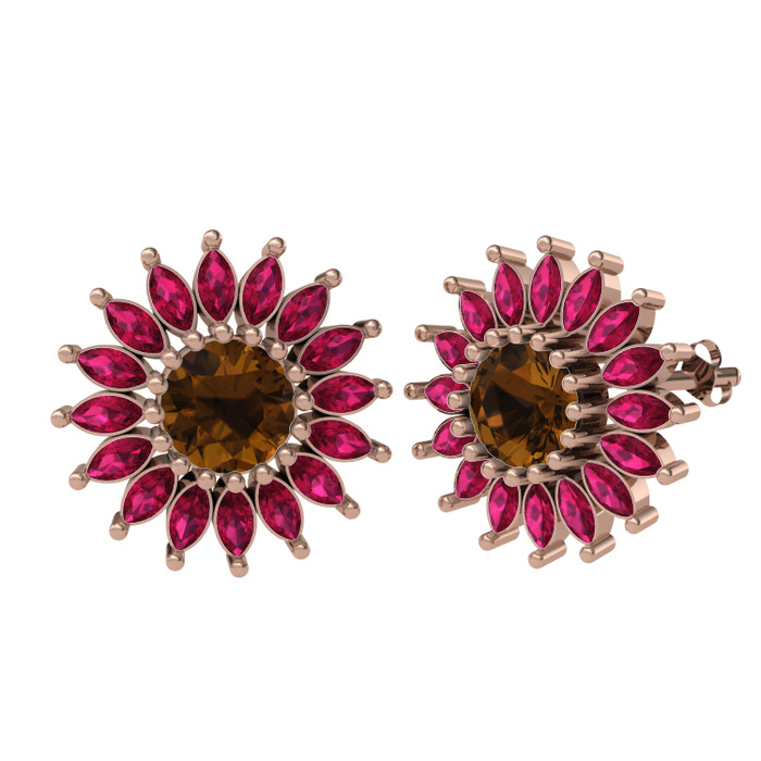 Dumanlı kuvars ve rodolit garnet 18 ayar rose altın küpe