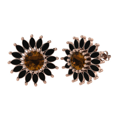 Dumanlı kuvars ve siyah zirkon 18 ayar rose altın küpe