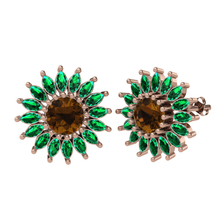 Dumanlı kuvars ve yeşil kuvars 18 ayar rose altın küpe