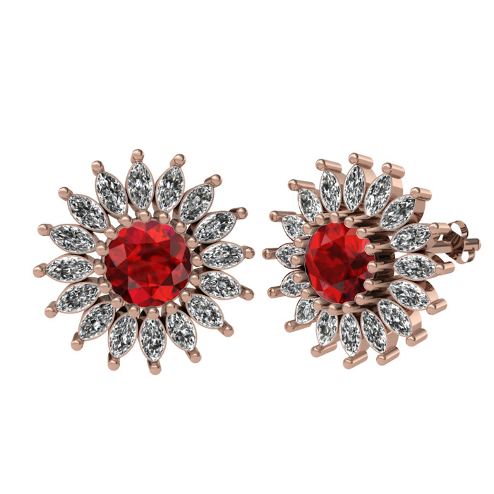 Garnet ve beyaz zirkon 18 ayar rose altın küpe