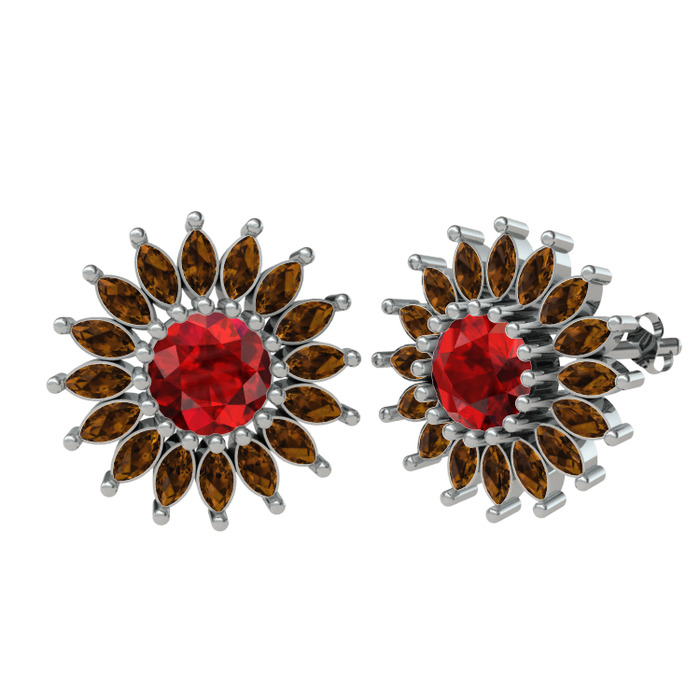 Garnet ve dumanlı kuvars 18 ayar beyaz altın küpe