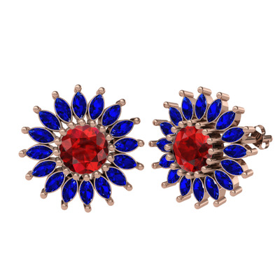 Garnet ve lab safir 14 ayar rose altın küpe