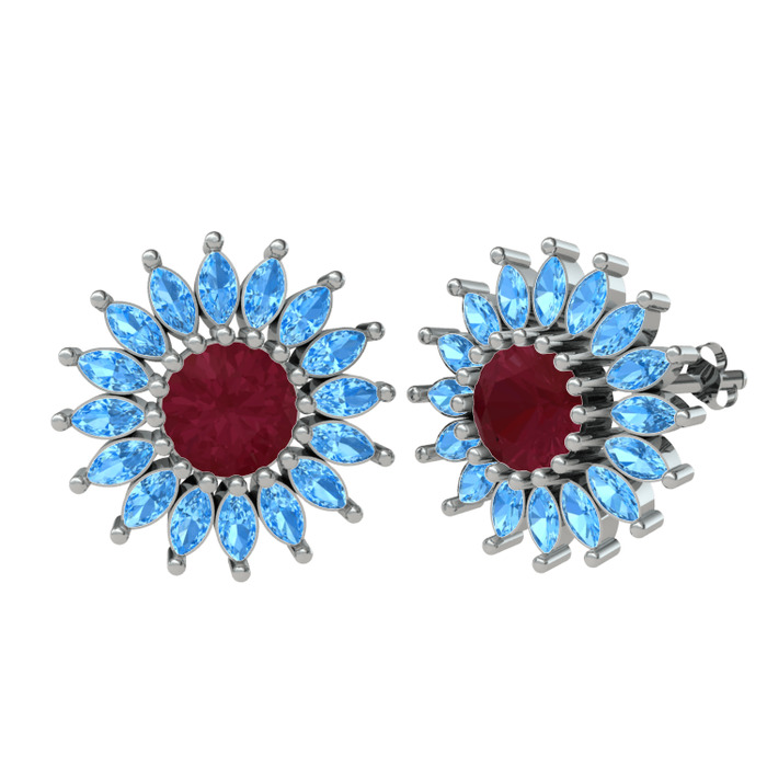 Kök yakut ve akuamarin 18 ayar beyaz altın küpe