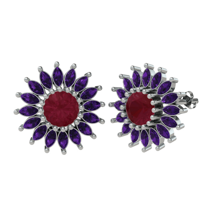 Kök yakut ve ametist 14 ayar beyaz altın küpe