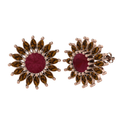 Kök yakut ve dumanlı kuvars 14 ayar rose altın küpe
