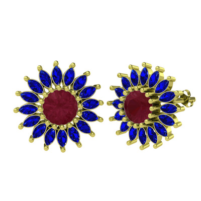 Kök yakut ve lab safir 14 ayar altın küpe