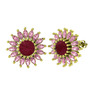 Kök yakut ve pembe kuvars 8 ayar altın küpe