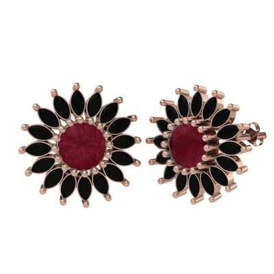 Kök yakut ve siyah zirkon 18 ayar rose altın küpe