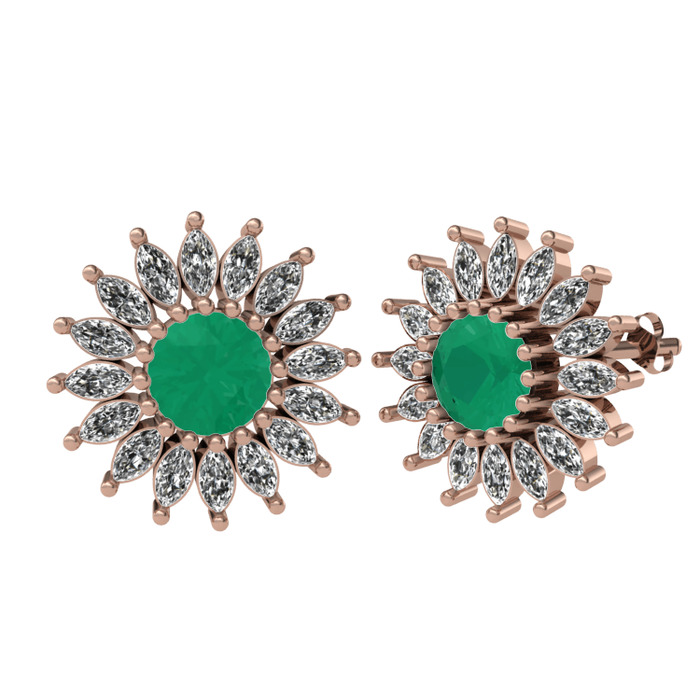 Kök zümrüt ve beyaz zirkon 14 ayar rose altın küpe