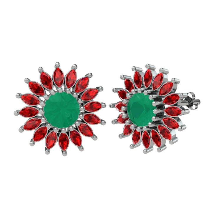 Kök zümrüt ve garnet 8 ayar beyaz altın küpe