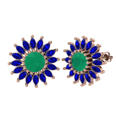 Kök zümrüt ve lab safir 8 ayar rose altın küpe