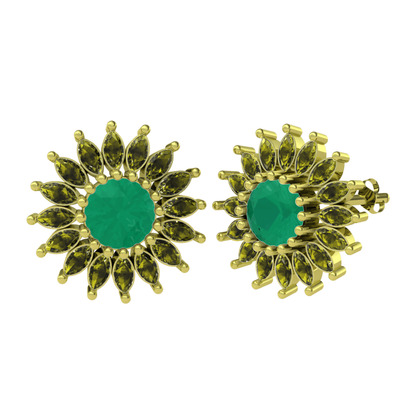 Kök zümrüt ve peridot 18 ayar altın küpe