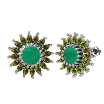Kök zümrüt ve peridot 8 ayar beyaz altın küpe