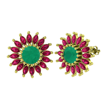 Kök zümrüt ve rodolit garnet 8 ayar altın küpe