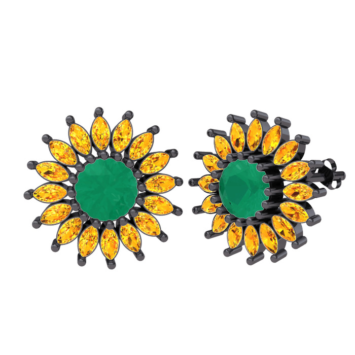 Kök zümrüt ve sitrin 925 ayar siyah rodyum kaplama gümüş küpe