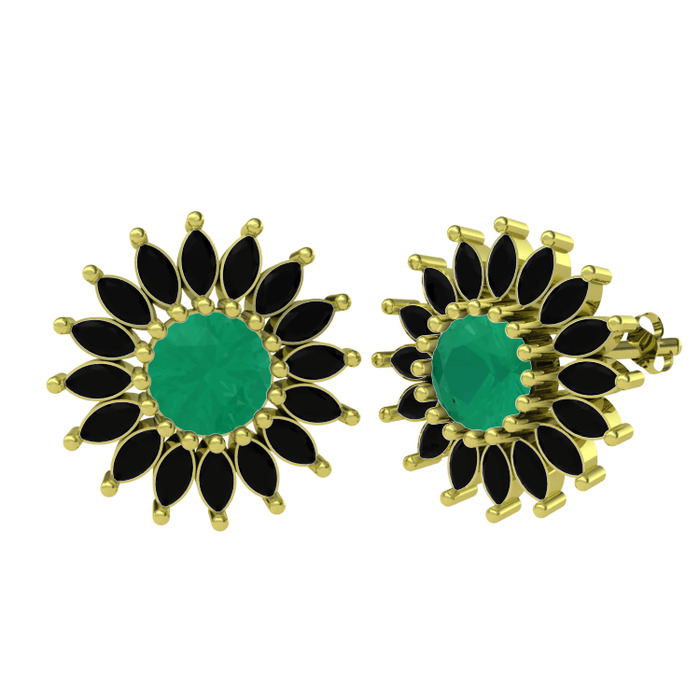 Kök zümrüt ve siyah zirkon 925 ayar altın kaplama gümüş küpe
