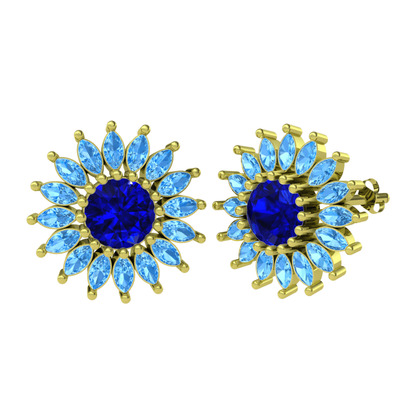 Lab safir ve akuamarin 18 ayar altın küpe