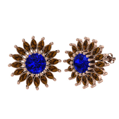 Lab safir ve dumanlı kuvars 18 ayar rose altın küpe