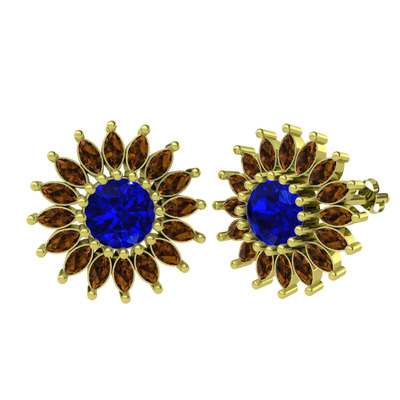 Lab safir ve dumanlı kuvars 8 ayar altın küpe