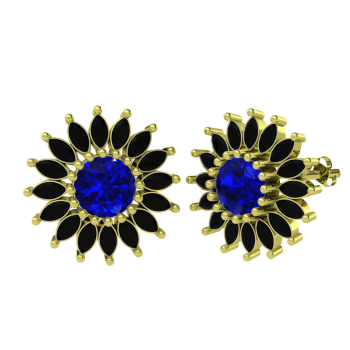 Lab safir ve siyah zirkon 14 ayar altın küpe