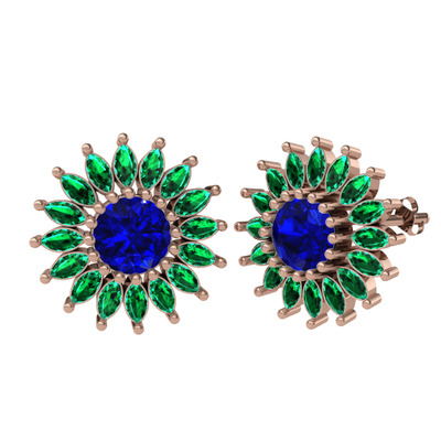 Lab safir ve yeşil kuvars 14 ayar rose altın küpe
