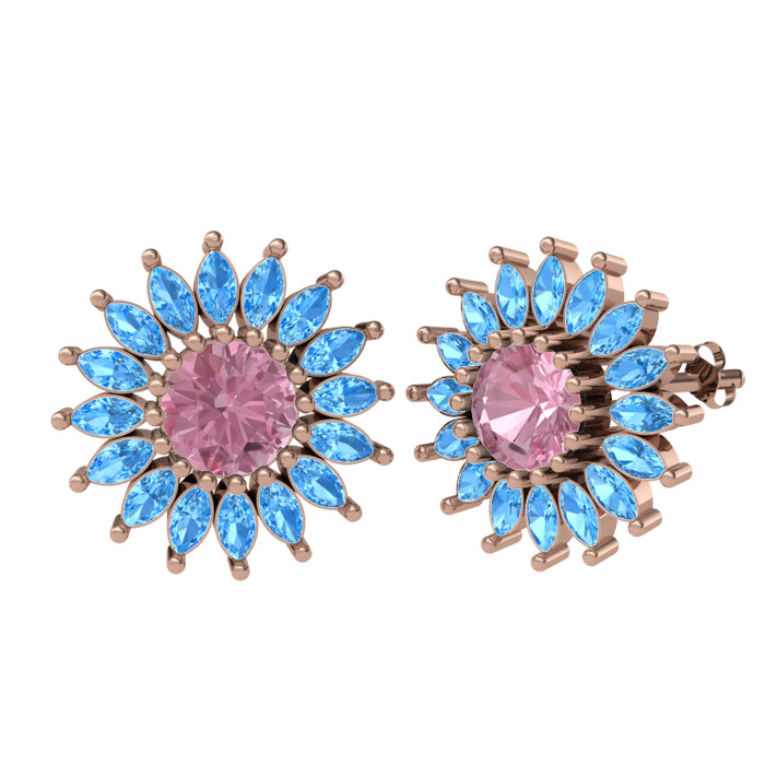 Pembe kuvars ve akuamarin 14 ayar rose altın küpe