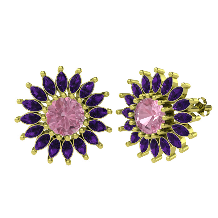 Pembe kuvars ve ametist 18 ayar altın küpe