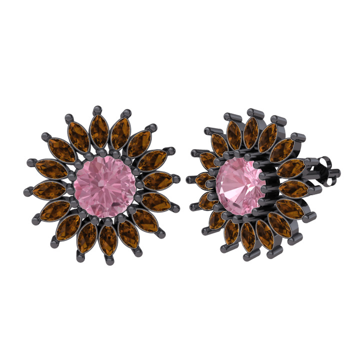 Pembe kuvars ve dumanlı kuvars 925 ayar siyah rodyum kaplama gümüş küpe