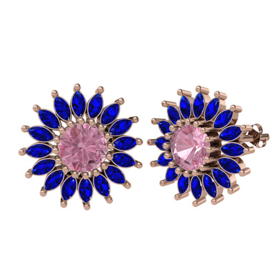 Pembe kuvars ve lab safir 14 ayar rose altın küpe