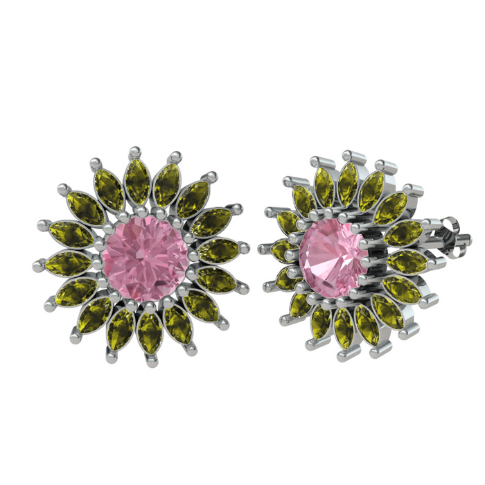 Pembe kuvars ve peridot 14 ayar beyaz altın küpe
