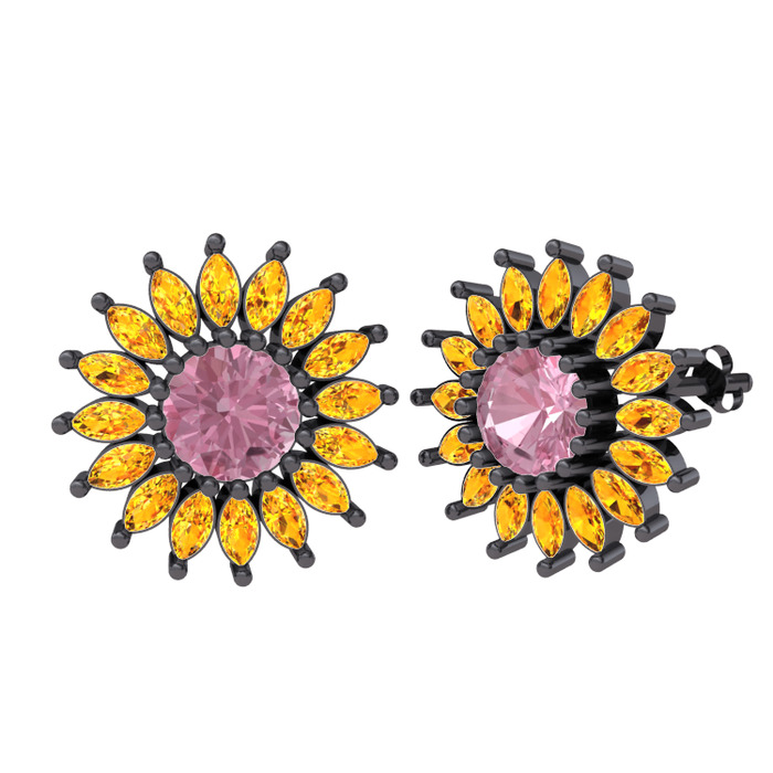 Pembe kuvars ve sitrin 925 ayar siyah rodyum kaplama gümüş küpe