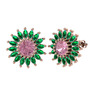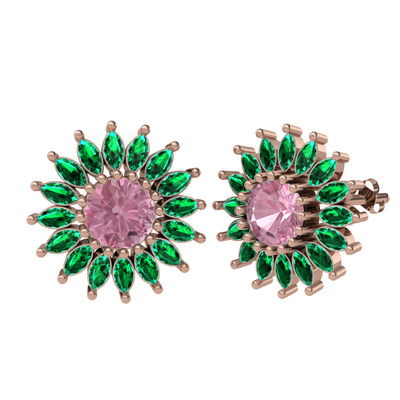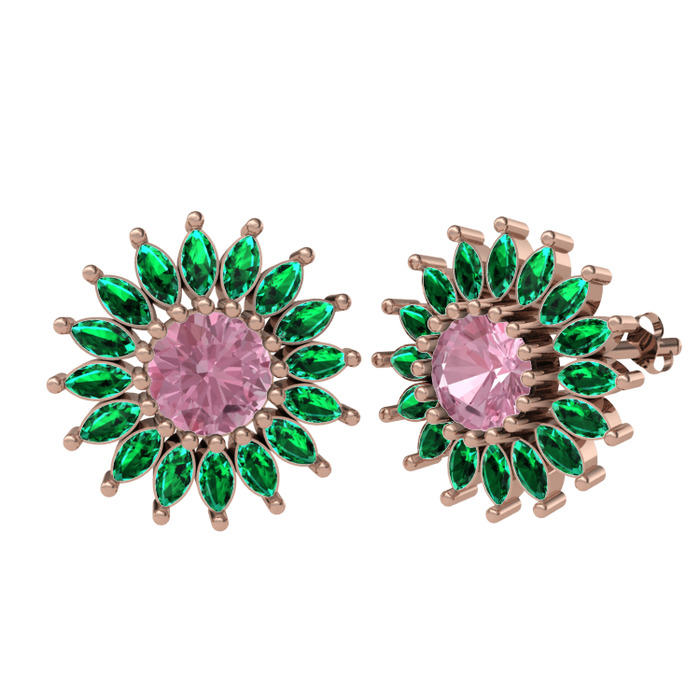 Pembe kuvars ve yeşil kuvars 14 ayar rose altın küpe