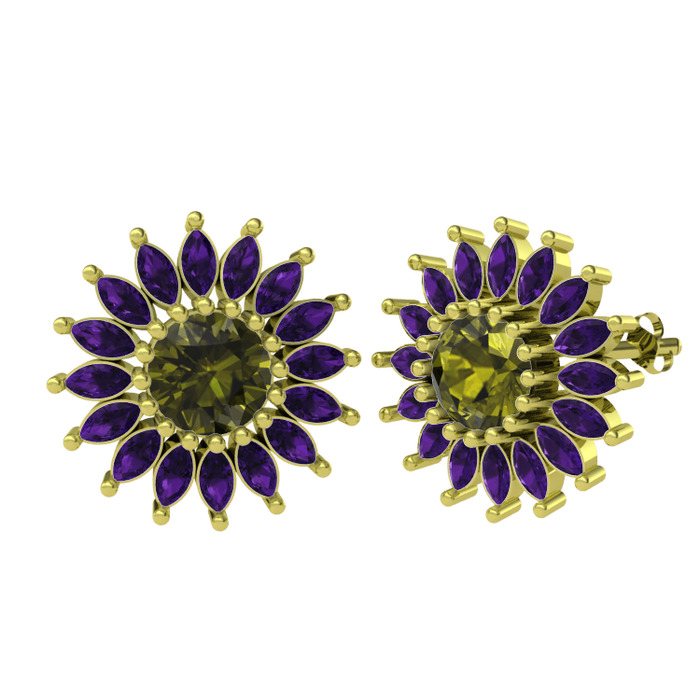Peridot ve ametist 925 ayar altın kaplama gümüş küpe