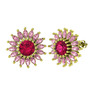 Rodolit garnet ve pembe kuvars 8 ayar altın küpe