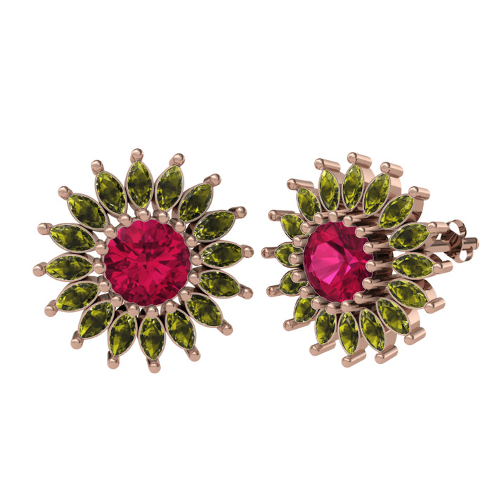 Rodolit garnet ve peridot 925 ayar rose altın kaplama gümüş küpe