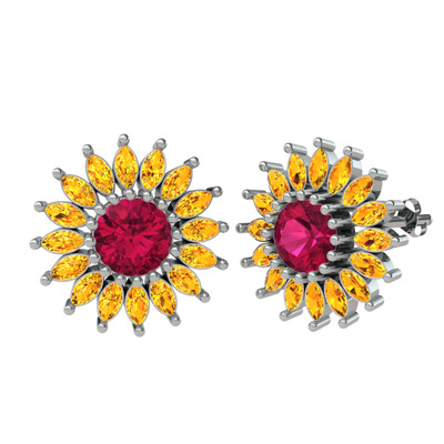 Rodolit garnet ve sitrin 14 ayar beyaz altın küpe