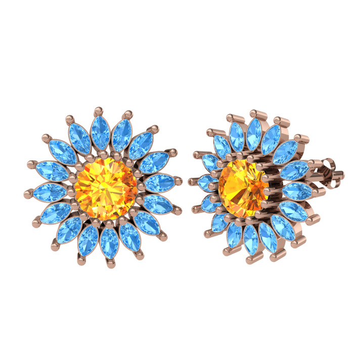 Sitrin ve akuamarin 8 ayar rose altın küpe