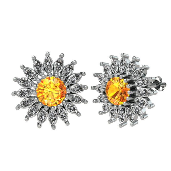 Sitrin ve beyaz zirkon 18 ayar beyaz altın küpe
