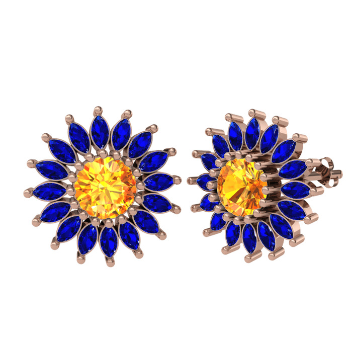 Sitrin ve lab safir 14 ayar rose altın küpe