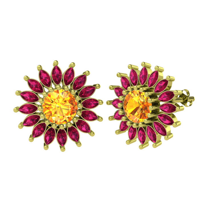 Sitrin ve rodolit garnet 14 ayar altın küpe