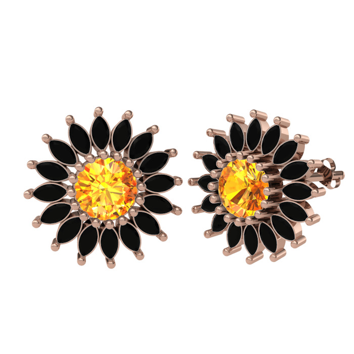 Sitrin ve siyah zirkon 8 ayar rose altın küpe